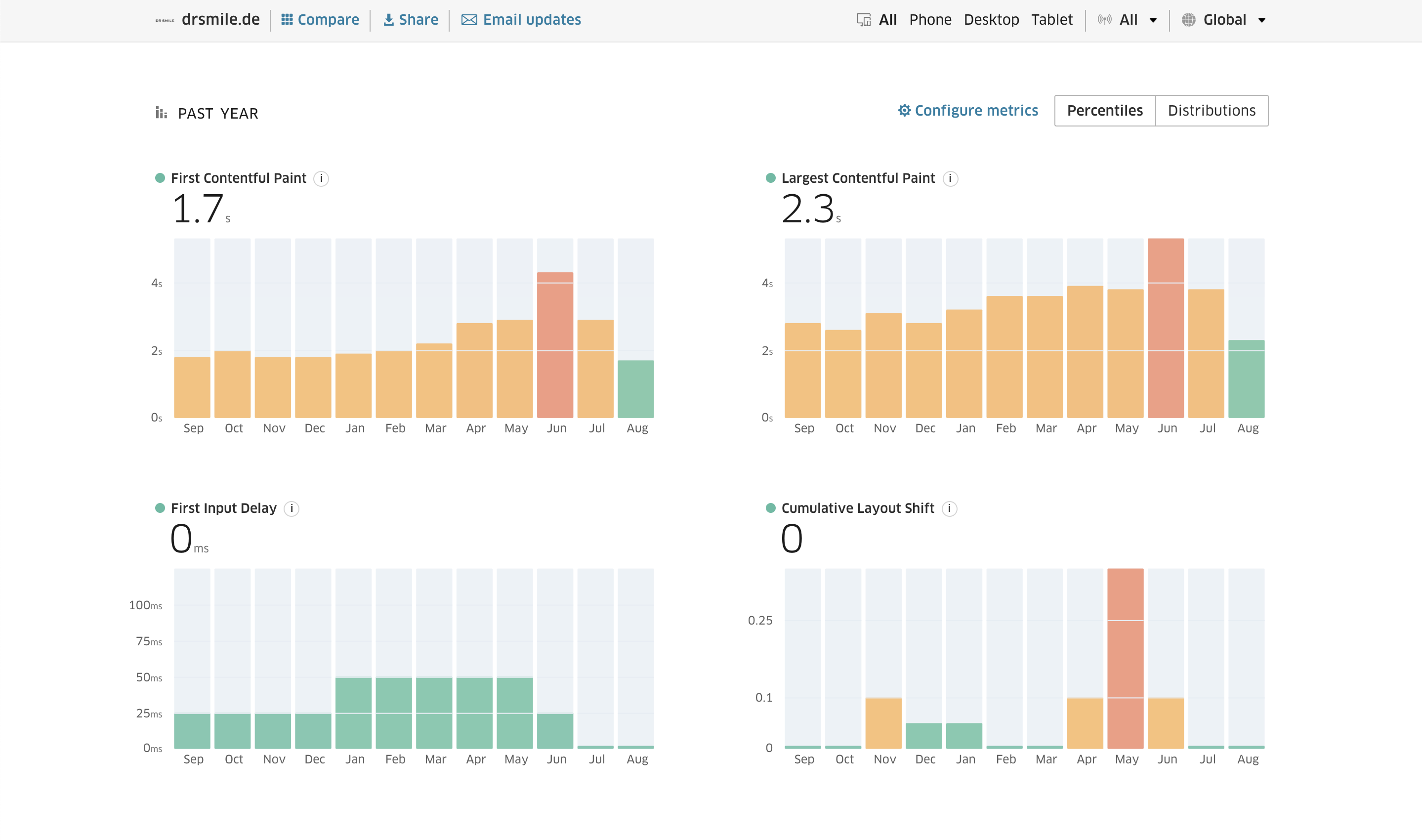 The new setup was rolled out in July. We’ve been seeing performance improvements since then. August is the first month when DrSmile fully complies with the Core Web Vitals assessment.