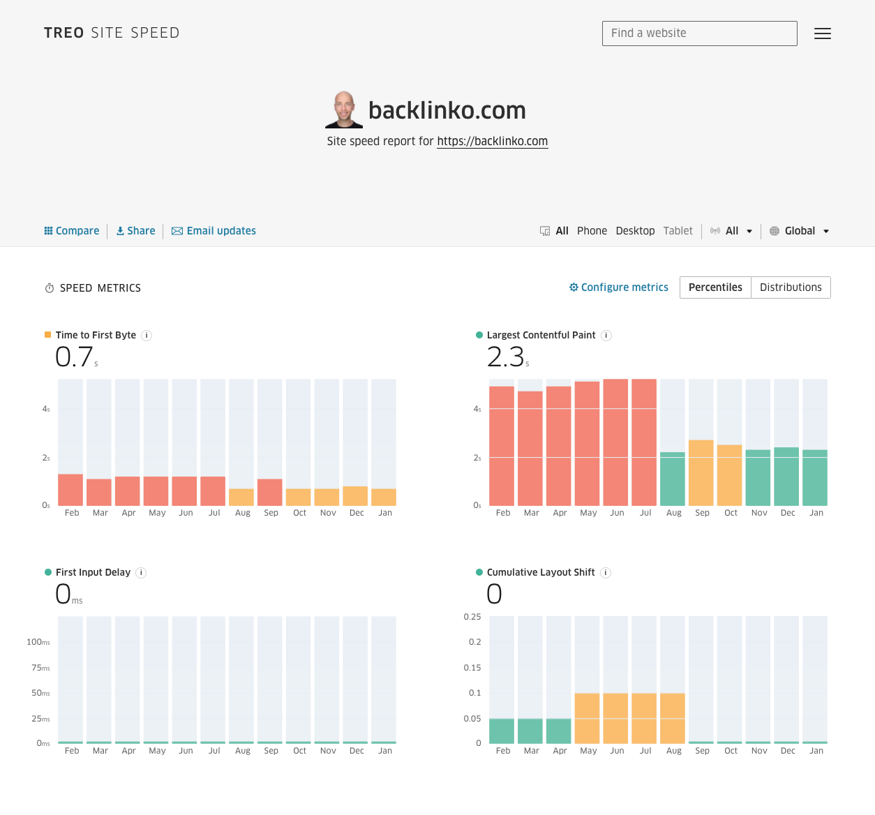 We deployed the new website in July 2020. Thanks to the Treo Site Speed tool, we can check data from the last 12 months and even compare them with their direct competitors:
