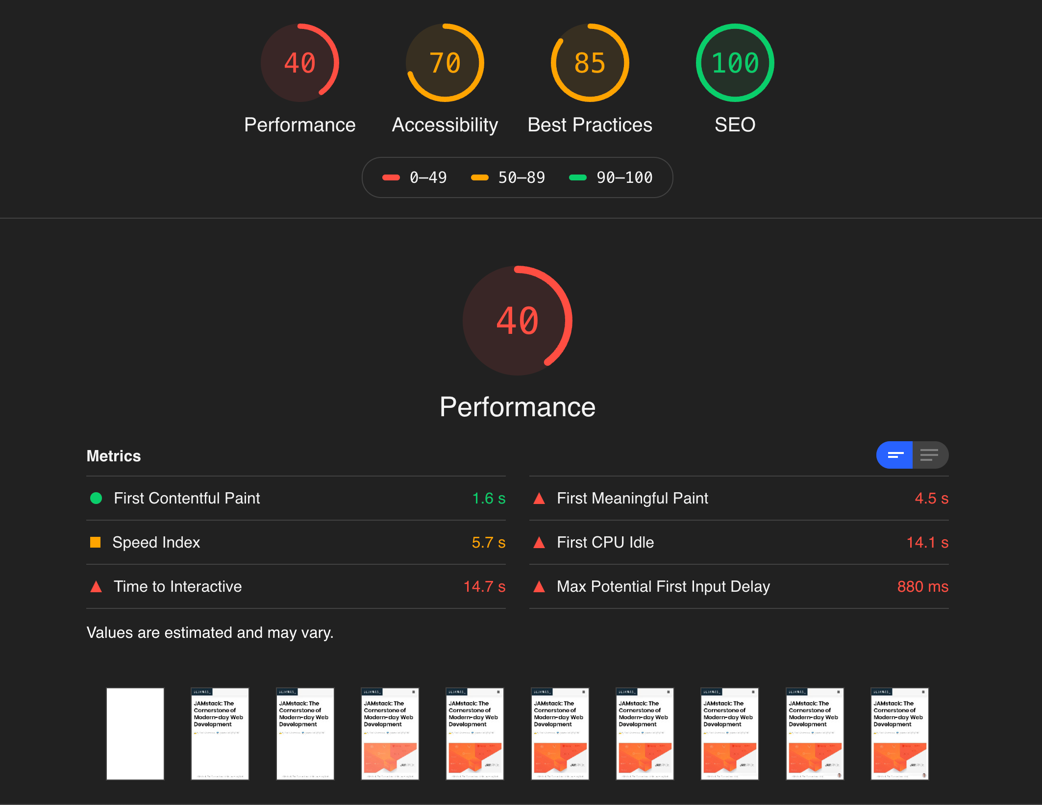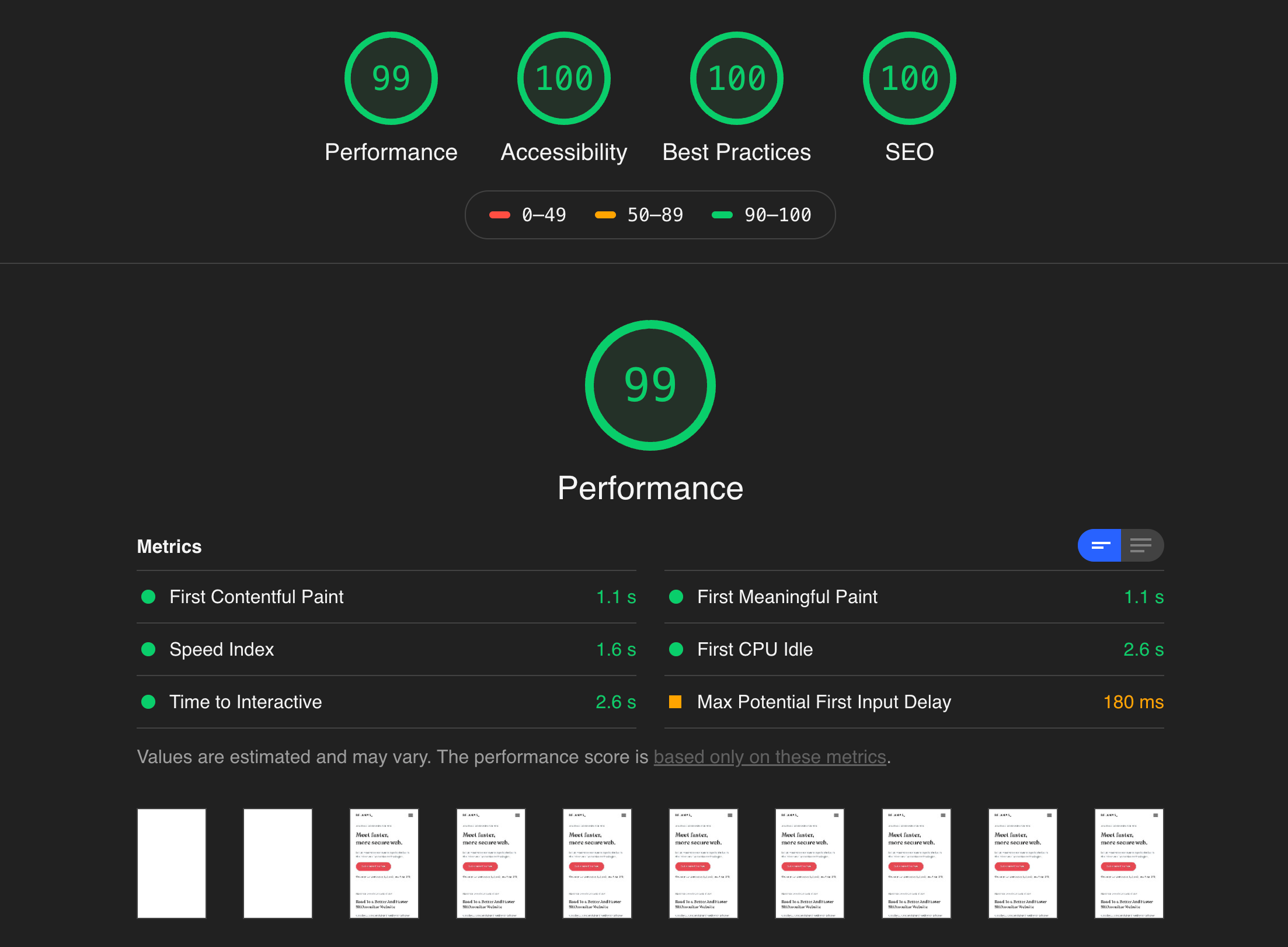 Let’s have a look at the Lighthouse scores once more: