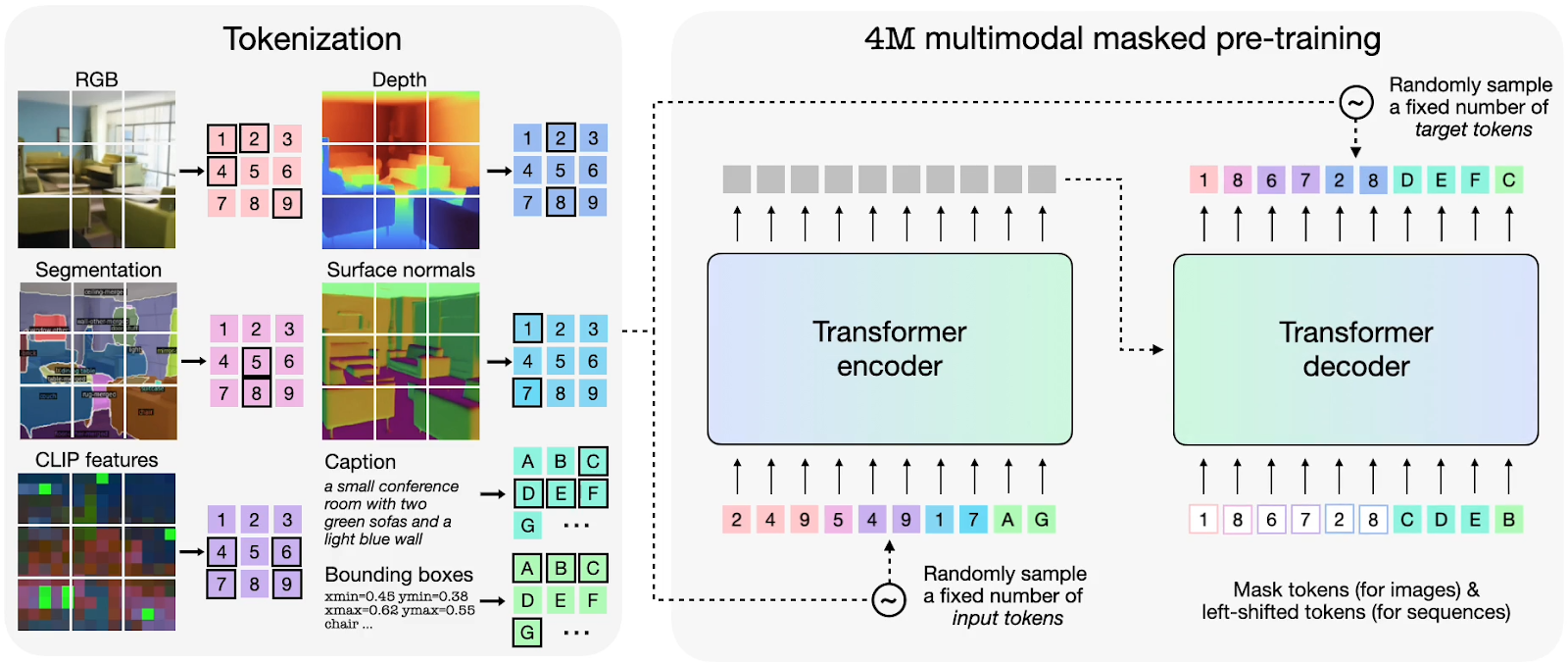 One example is the 4M-21 model, which stands out for its impressive capabilities across a wide array of vision and language use cases. By converting different modalities into sequences of tokens, a unified transformer encoder-decoder can be trained on text, images, geometric data, semantic data, and neural network feature maps. The training process involves mapping one random subset of tokens to another.
