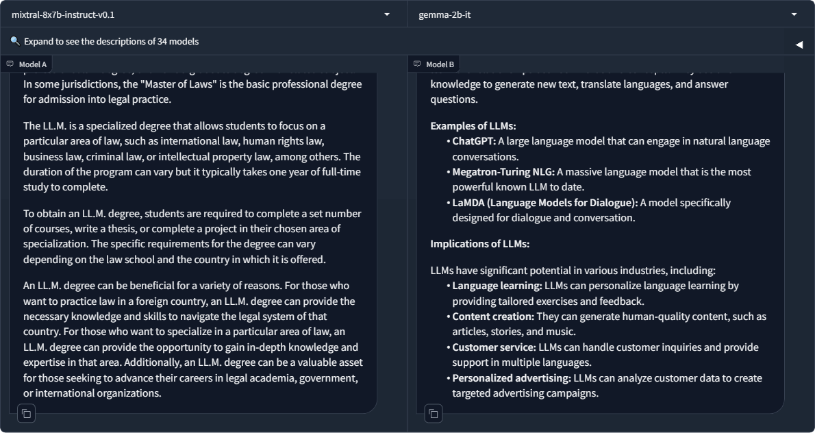 Building this chatbot let you try out Gemma 2 hands-on, but you can also compare models in the Chatbot Arena.