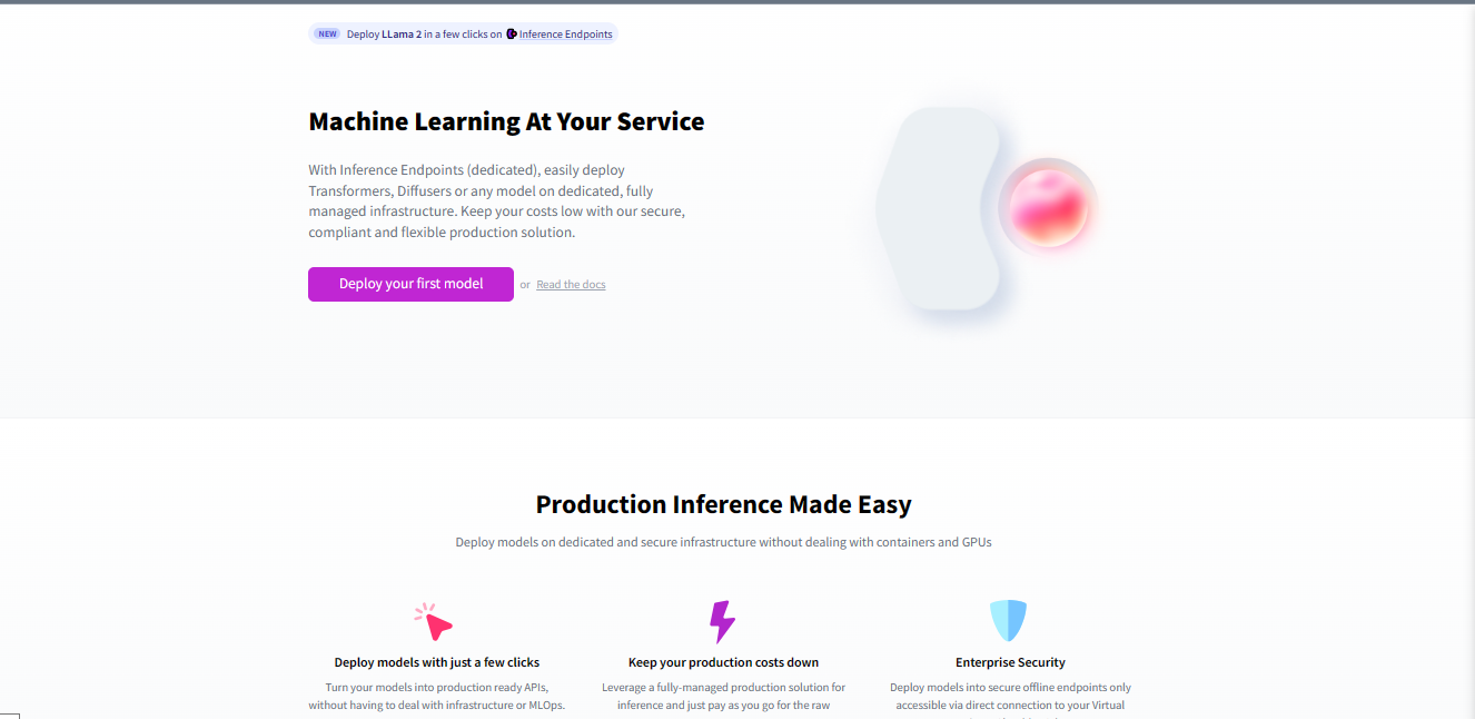 Hugging Face Inference Endpoints provide a straightforward way to deploy models. They handle setting up servers on cloud platforms like AWS for you. All you need is a Hugging Face repository with your trained model.