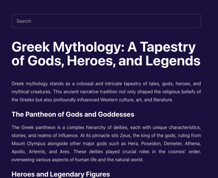// "Cosine Similarity for Pair 2: ", -0.31622776601683794In this example, we will demonstrate how our powerful search engine allows users to explore the mythical universe of ancient deities from Greek and Nordic mythologies.
