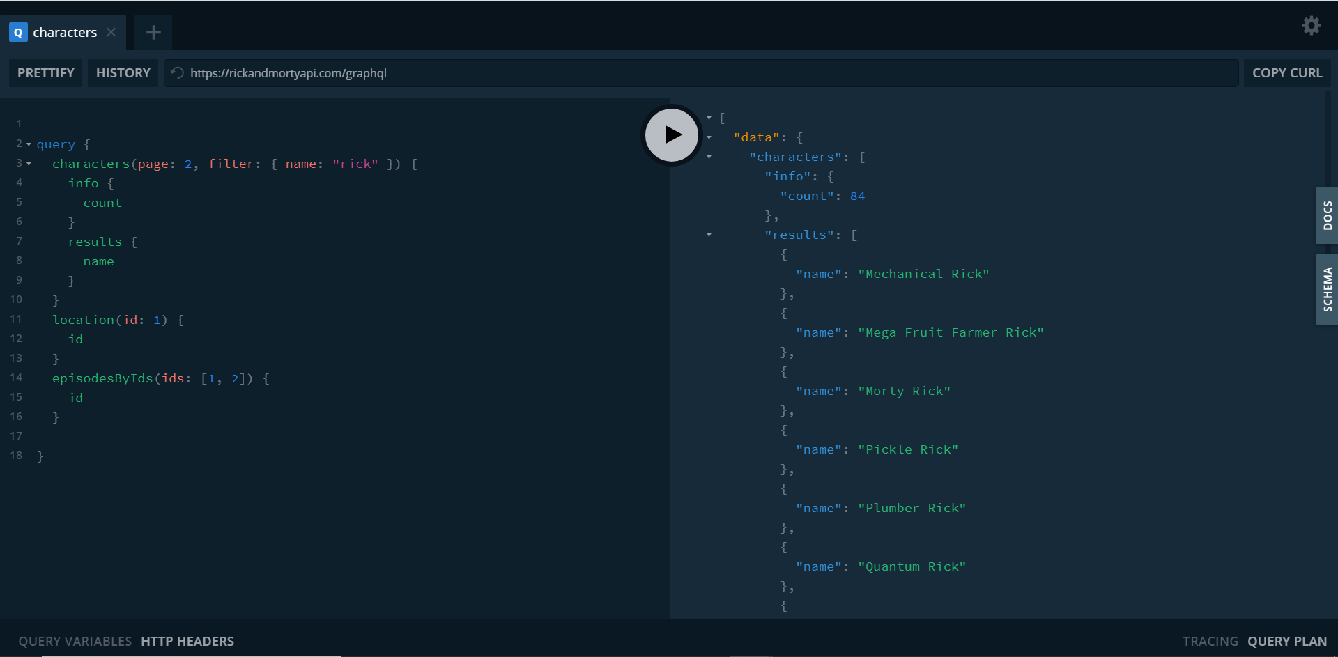 To have a better grasp of the concepts of REST API, let’s take a look at the base url of the Rick and Morty API: https://rickandmortyapi.com/api