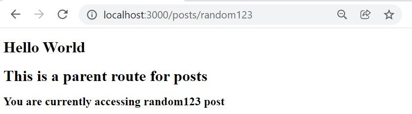 localhost/3000/posts - remix would load up post.jsx for this route as the file exist.localhost/3000/posts/new - remix would load up new.jsx component for this route as it exist.localhost/3000/posts/random123 - remix would check if such a route is explicitly defined in the posts directory, when it fails to find one, it will then check for any dynamic route, which would lead it to load up the $postid.jsx.But, we might want to know what exact URL was visited by a user in the dynamic route, and then probably do something with this information, like make a request to a database for the exact post that was requested.