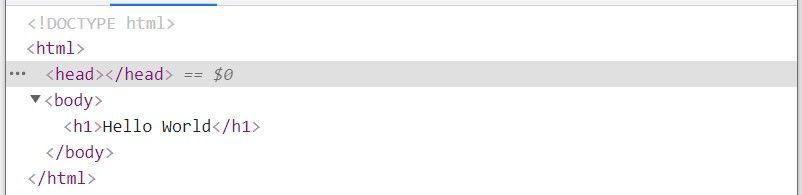 Another thing we should know is that when we inspect the source code for this web page with the browser's dev tool, we should notice that what was sent to the client is just a plain web page with nothing but the returned h1 text element.