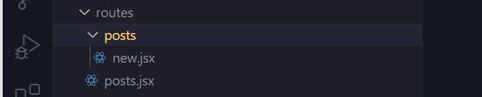 Let's say we create a new folder within the routes directory called posts and within this posts folder we create another file called new.jsx (which technically means we have two distinct routes sharing the same name i.e posts.jsx and the posts directory we just created):