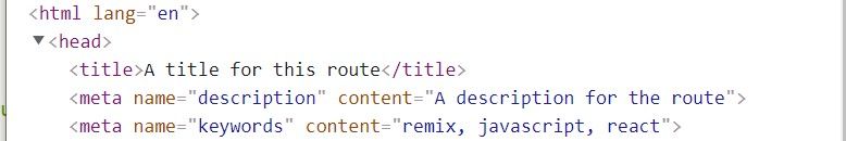 Remix lets you dynamically set the SEO meta information and social links for each route module by providing us with a Meta component that can be placed inside the head of our HTML document.