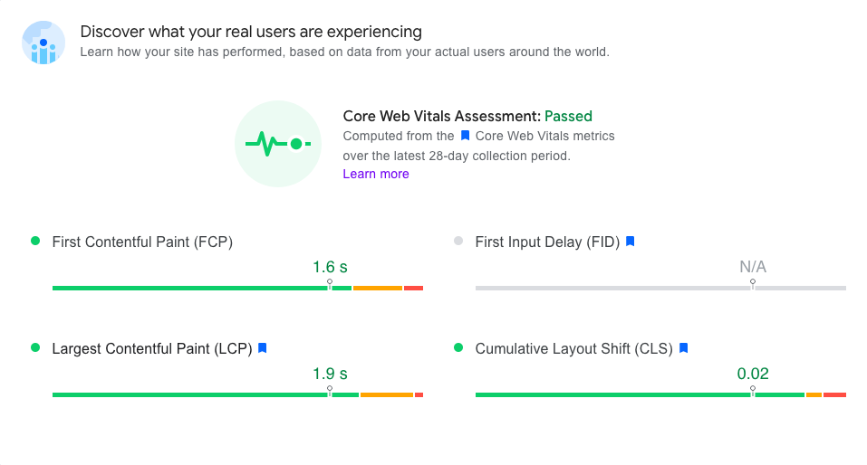 While the goal of these metrics is to provide results by measuring in the field, that reflect how the real-user experience is performing, with other Web Vitals metrics, we can also understand the health of our performance in the lab as well.