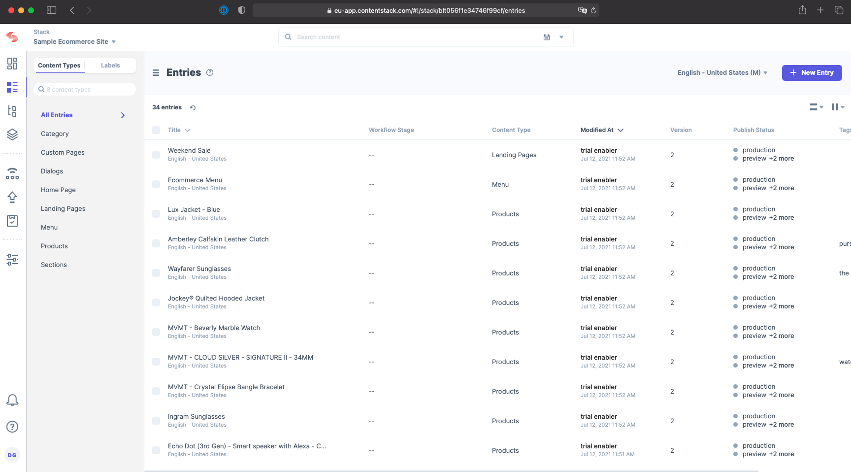 Besides the aforementioned sections, there are tabs for publishing queues, releases and tasks; not to mention settings, where you create and configure environments, user roles, workflows etc. I highly recommend you sign up for a free 2 week trial. It comes with an in-depth example Stack showcasing everything that Contentstack has to offer.
