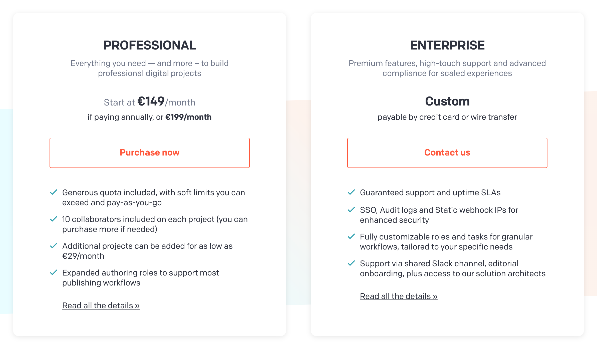 For those of you shopping around for an Enterprise solution, DatoCMS offers apps for asset storage via AWS and Google Cloud, and centralized user management via Okta, OneLogin, and Azure Active Directory.