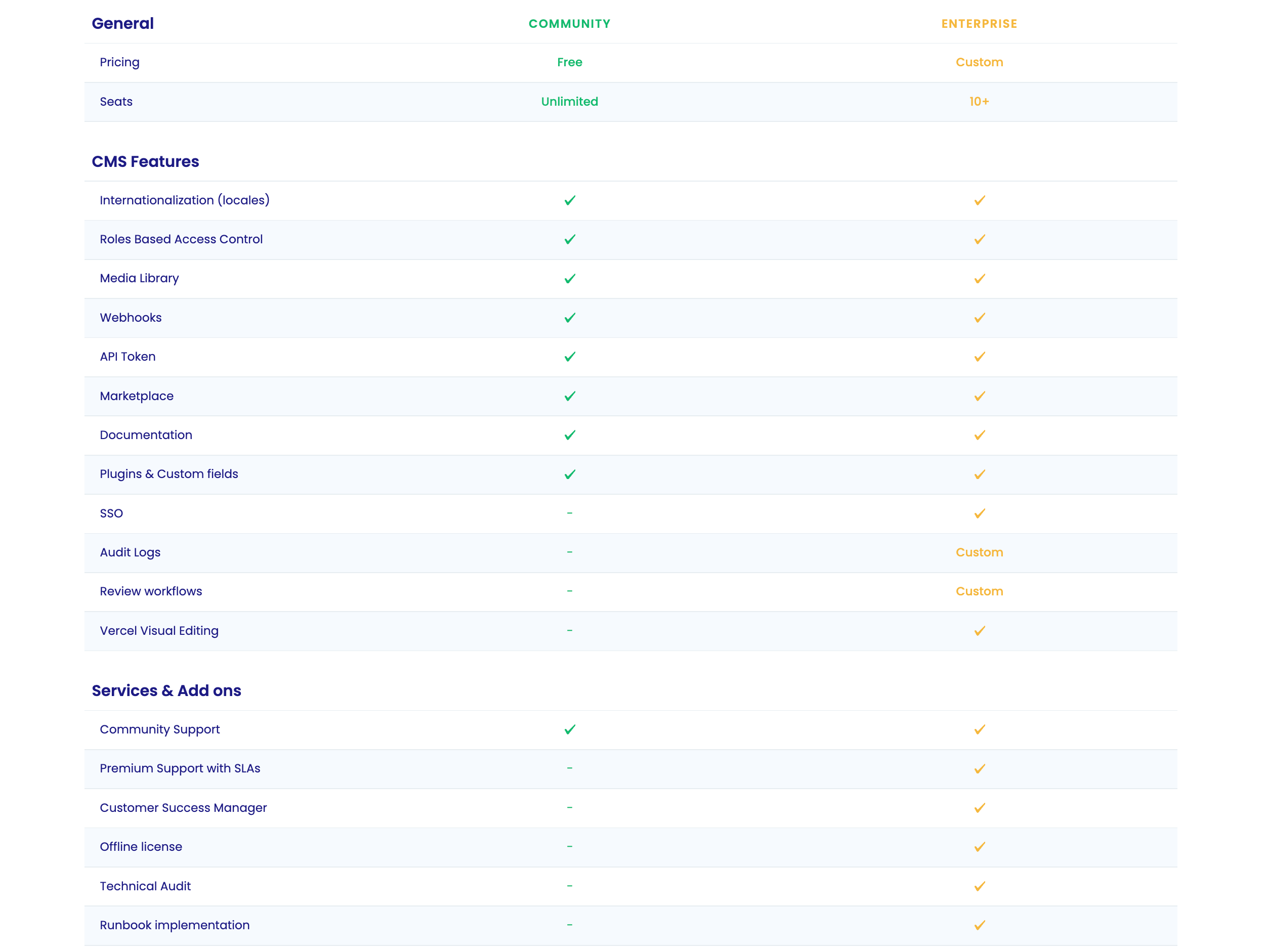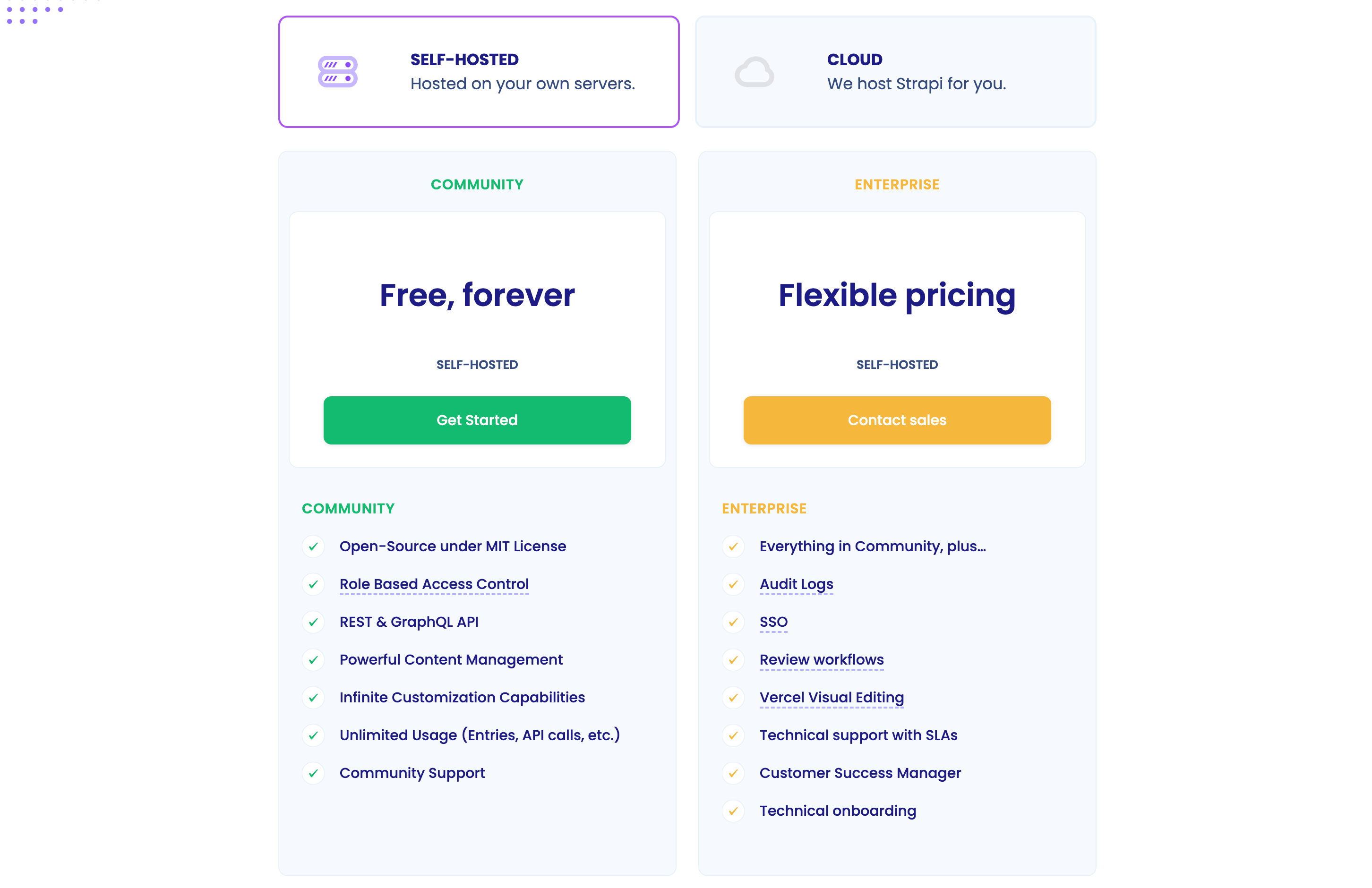 The best notice here is that Strapi, as mentioned before, is OPEN SOURCE!!! 🎉, so basically you can get most of the powerful features for free(forever), hosted on your server.