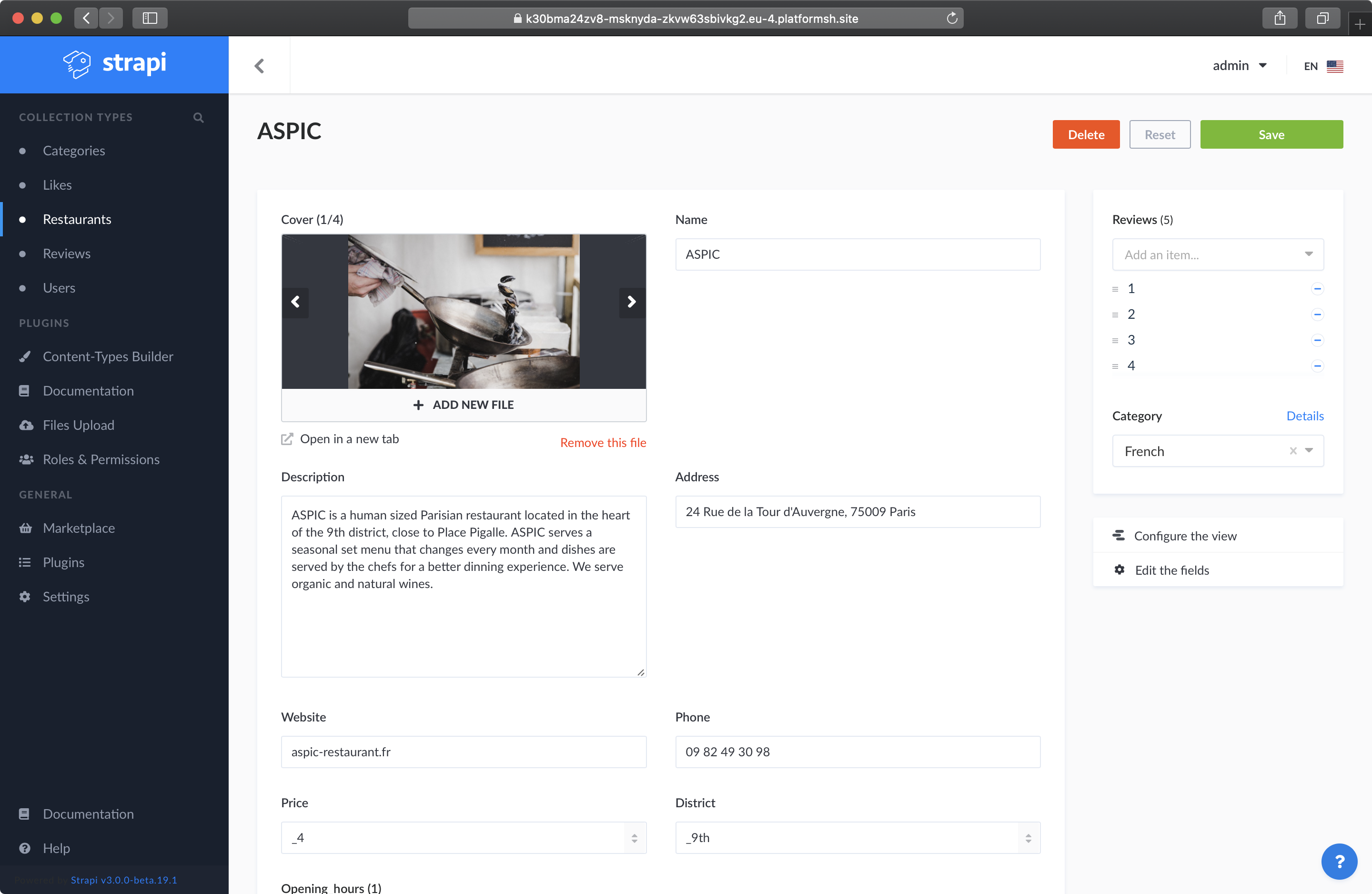 They have an intuitive admin interface for both actors, developers, and editors. From the developer's perspective, you can easily define your API content model due to their simplified content type builder. And from the editor's point of view, you ’ll be greeted with an intuitive user interface that allows for fast content creation.