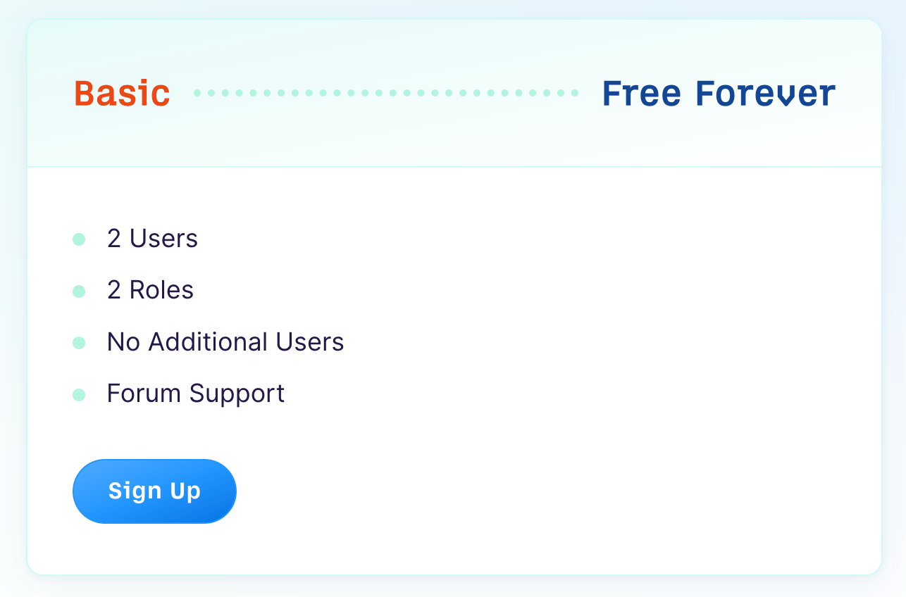 Team: Priced at $29 per month, the Team plan includes 3 users, 2 roles, and a maximum limit of 10 users. Additional users can be added at $9 per seat. The plan offers forum support for users to get started with ease.