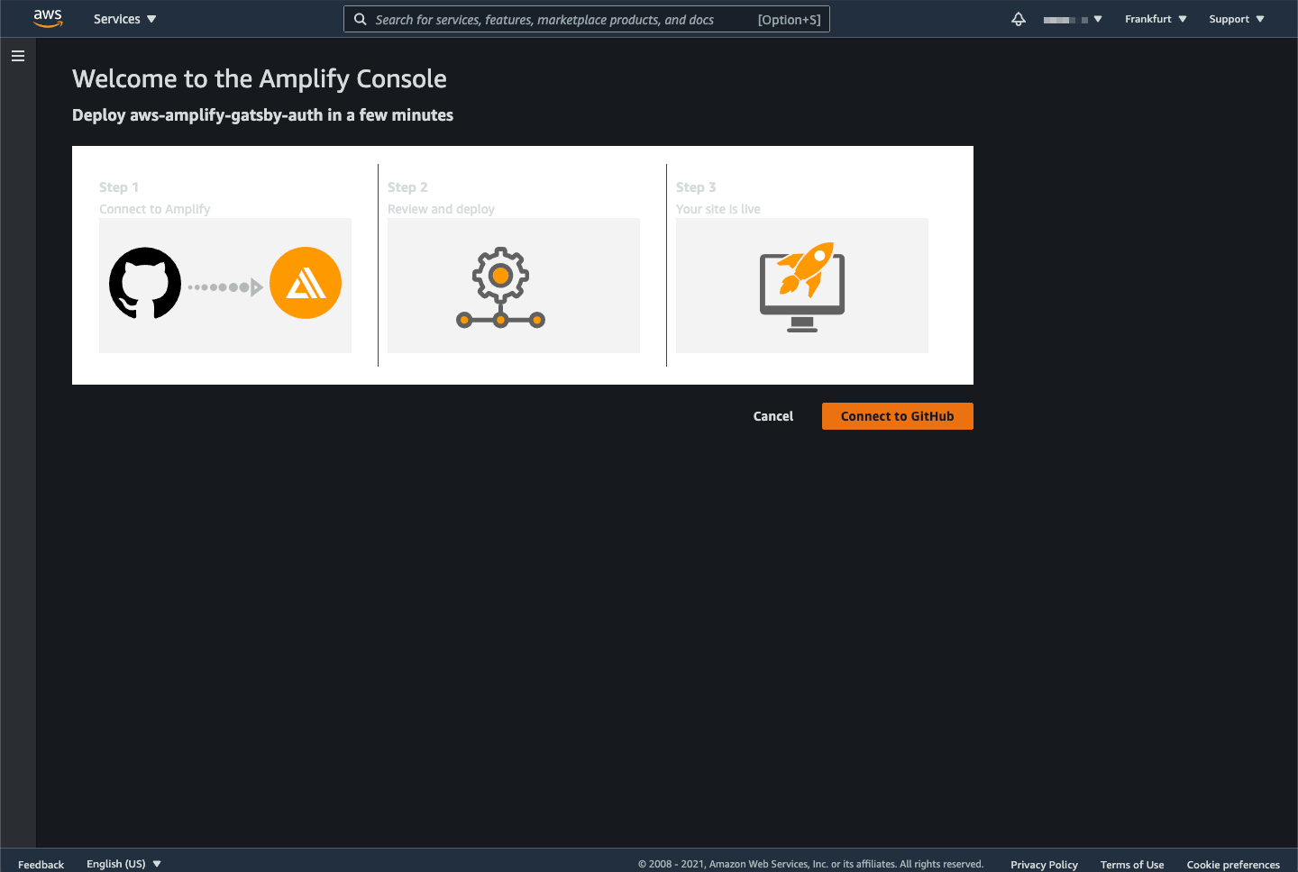 There is no need to deal with IAM (which is a service to manage access to other AWS services). No need to configure CloudFront, S3, and CodePipeline. All you need is to connect the git repository and set the build command.