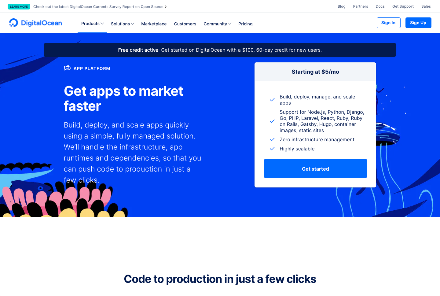 In late 2020 DigitalOcean has announced the App Platform. It aims to provide a fully managed platform to deploy modern projects. Connect git repository, set CI/CD build command, and deploy. DigitalOcean uses Cloudflare CDN, which has built-in DDoS mitigation too.