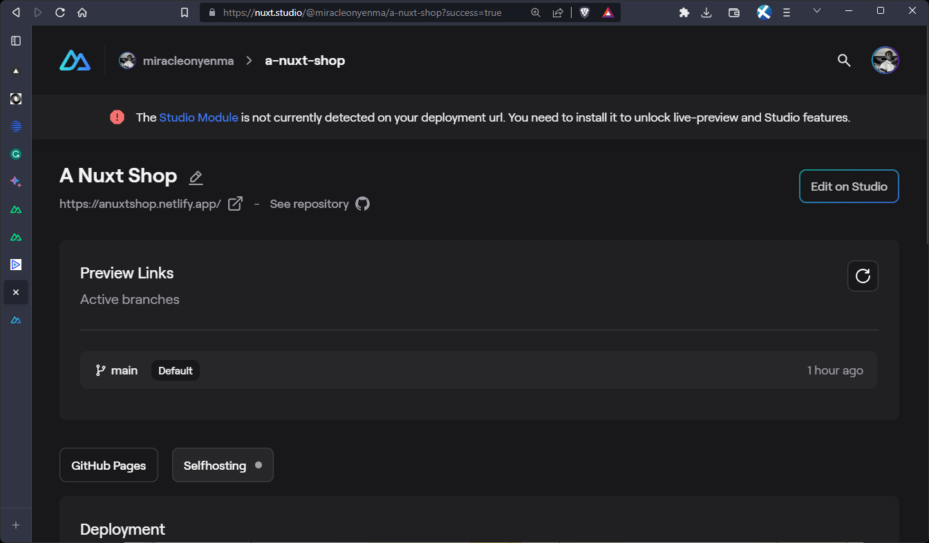 Furthermore, one of Nuxt Studio's standout features is its ability to generate real-time preview URLs for each branch or pull request. This means that you can instantly view changes without the need for repetitive re-deployments.