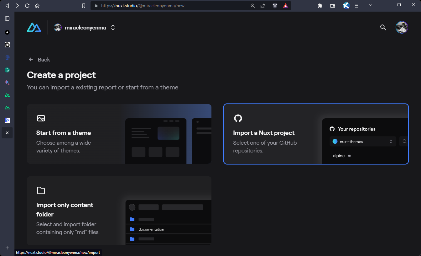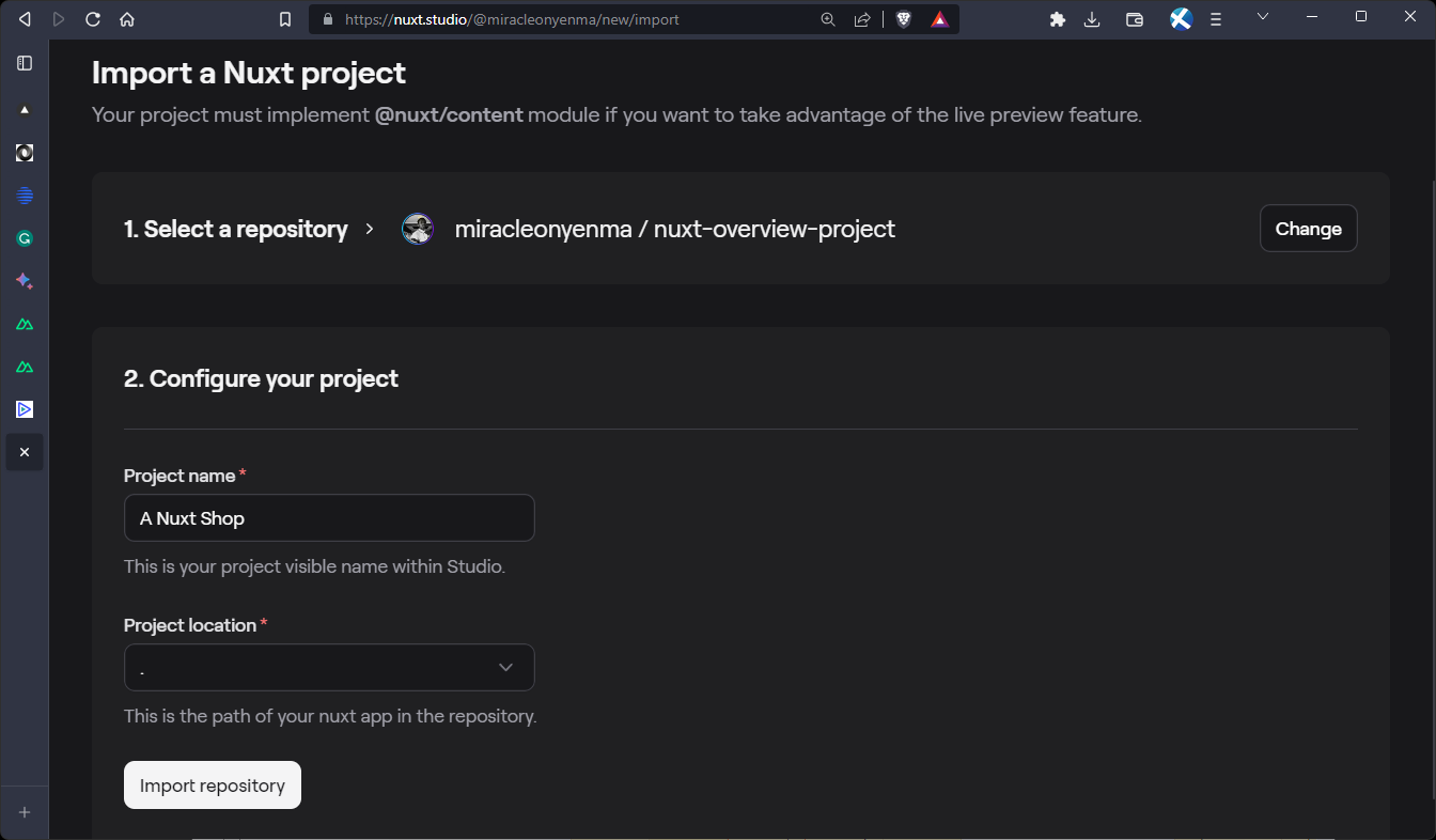 Now, Nuxt Studio will set up the project for us: