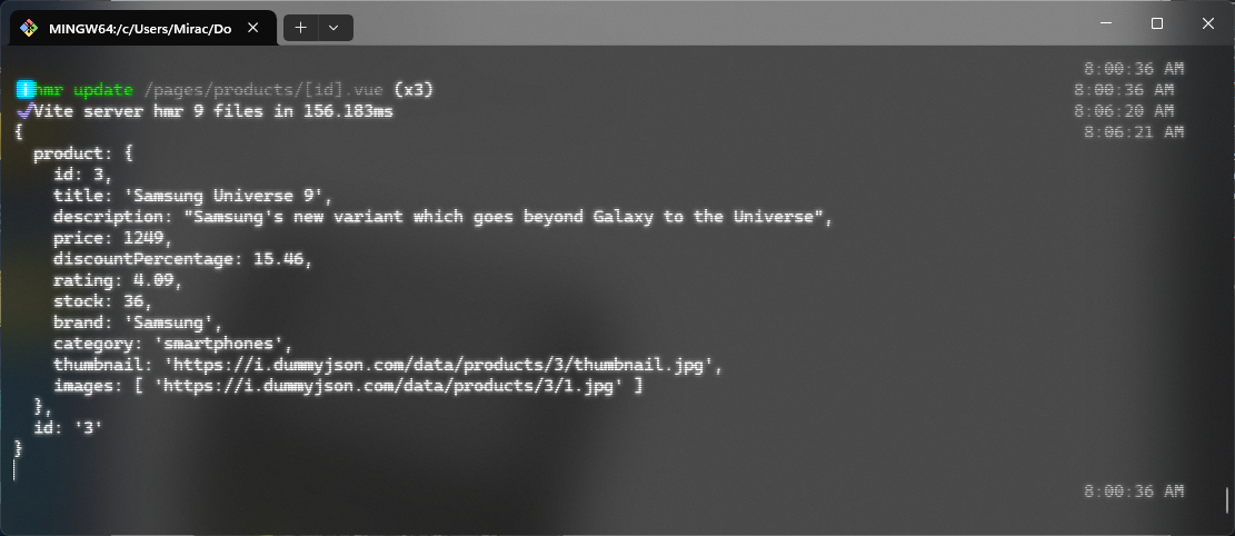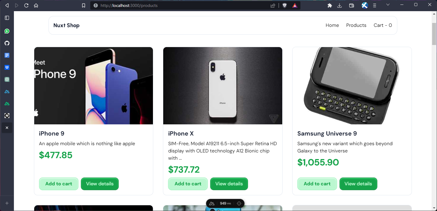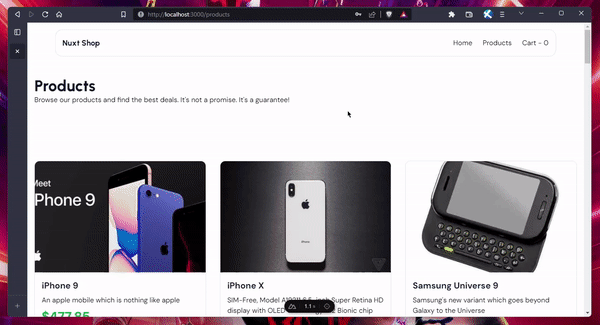 Create a new ./pages/products/index.vue file and enter the following code: