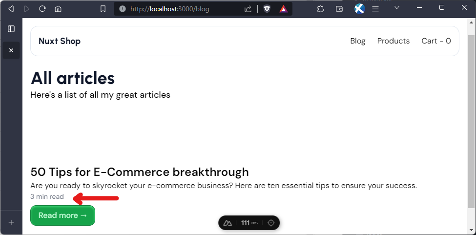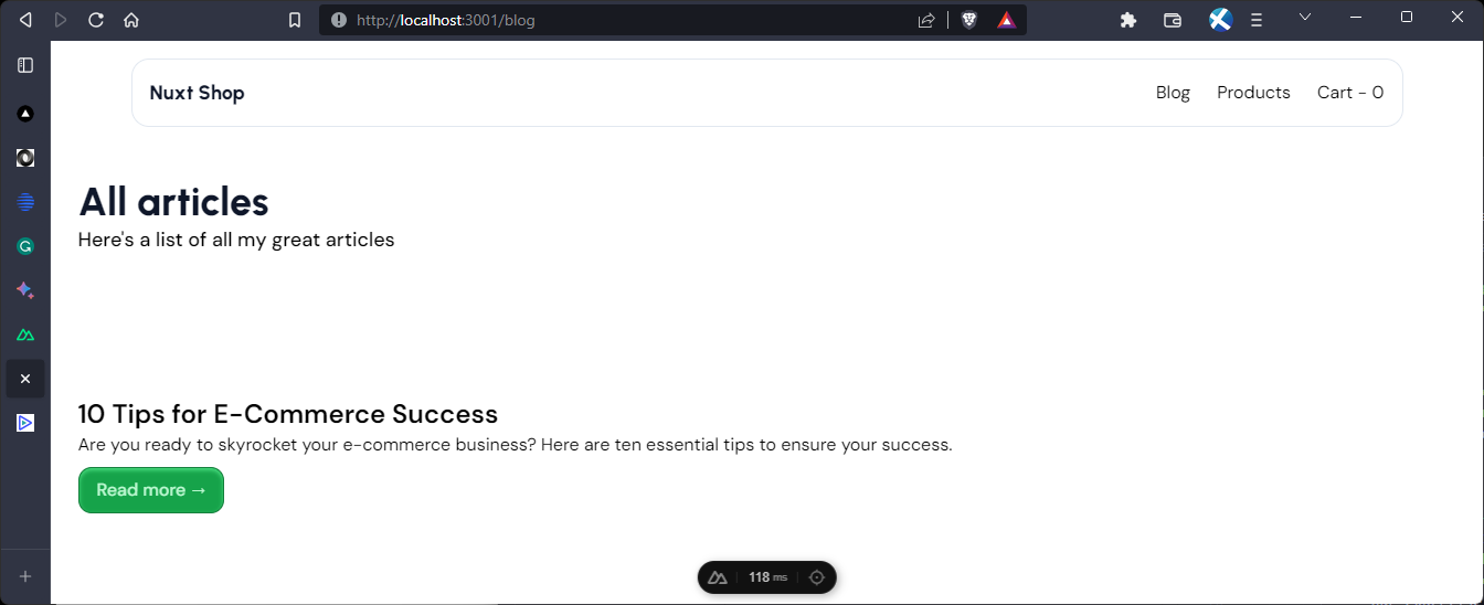 </template>Now, when we navigate to http://localhost:3001/blog we should have this: