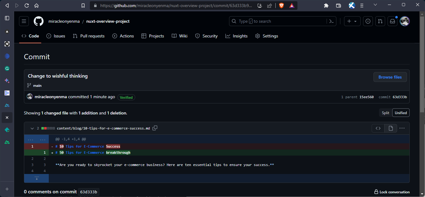 Here, we can see the changes made on GitHub: