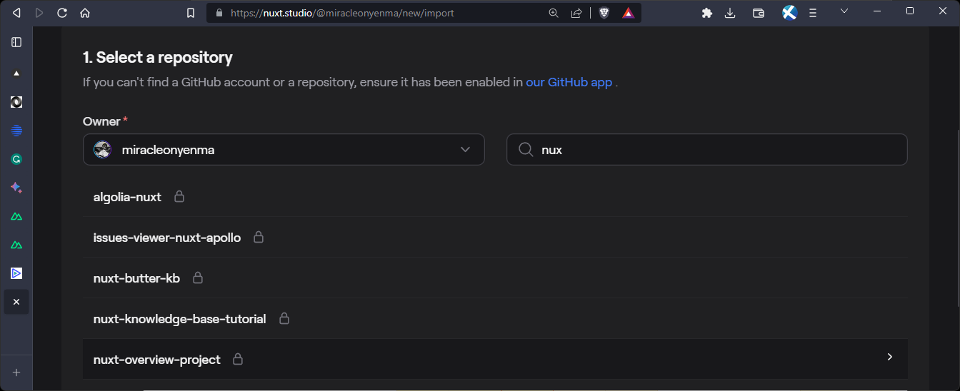 Let’s briefly walk through how we can set up a project in Nuxt studio. First, we’ll have to sign up for an account at https://nuxt.studio/.