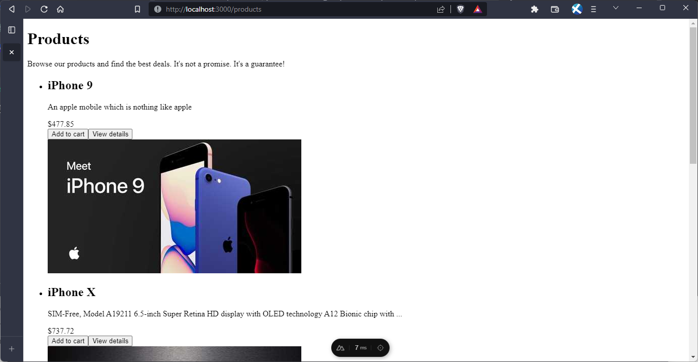 </template>With that, we can restart our server and we’ll have something like this: