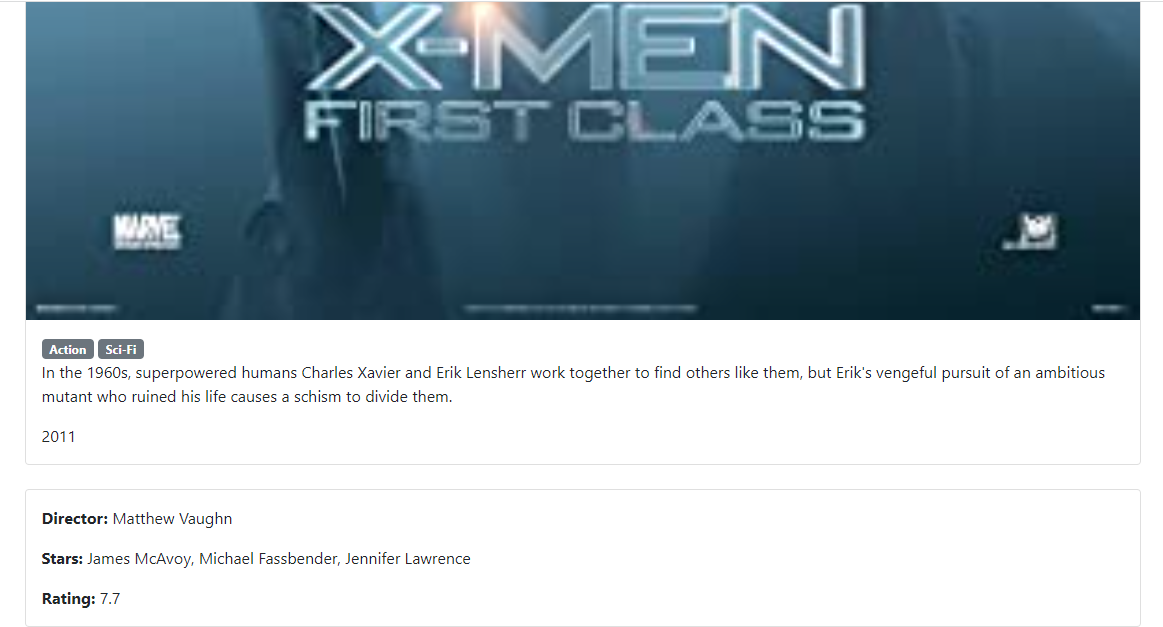 ...This component receives a prop named movie, which is an object that includes information about a movie, such as a title, year, and poster.